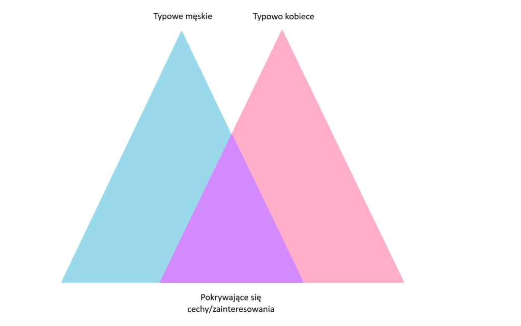 Wiele osób – dzieci, nastolatków i dorosłych – ma zainteresowania lub maniery, które mogą być stereotypowo kojarzone z mężczyznami lub kobietami. Ale stereotypy są tylko stereotypami. Odzwierciedlają one rzeczywistość, opisując „typowe” zachowania, ale nie powinny być wykorzystywane do definiowania tego, co jest „normalne” lub oczekiwane od danej osoby. Nie należy ich również postrzegać jako sztywnych granic ludzkich zachowań lub czynników pozwalających przewidzieć indywidualne zainteresowania lub zachowania. Pomocny wykres ilustruje tę kwestię: